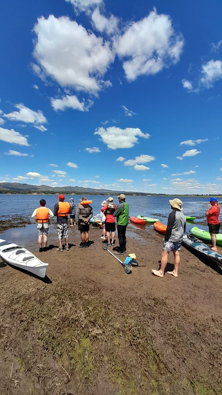 Para dictar el curso, Sosa convocó a Fabricio, instructor ACA radicado en Rosario, quien se encontraba de regreso temporal desde Estados Unidos, donde está completando su formación como “instructor de instructores”. Con una ventana de tiempo muy acotada —antes de iniciar su temporada como guía antártico— se organizó rápidamente la capacitación en el lago Los Molinos, entre Los Reartes y Potrero de Garay.